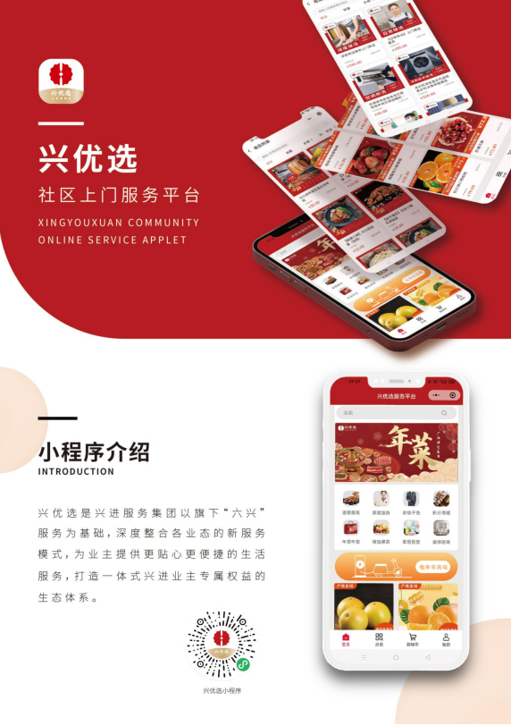 目前興進物業(yè)圍繞客戶需求,創(chuàng)建"興優(yōu)選"線上商城,包含幸福食堂、家政保潔、房屋租售、好物購買等一站式生活服務(wù)。貼心便利的全生命周期服務(wù),只為讓您的生活溫馨舒適、便捷多彩,觸手可達(dá)。
