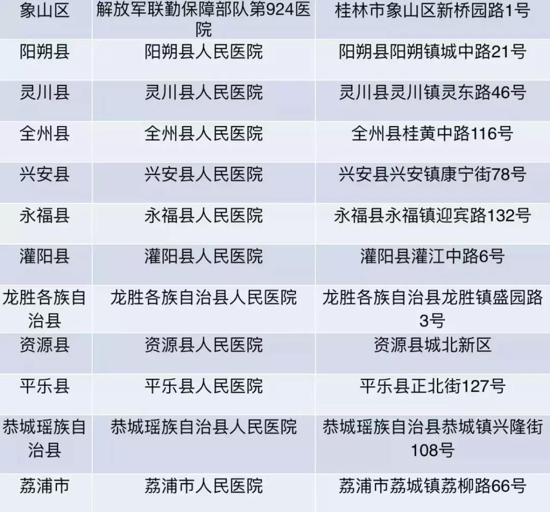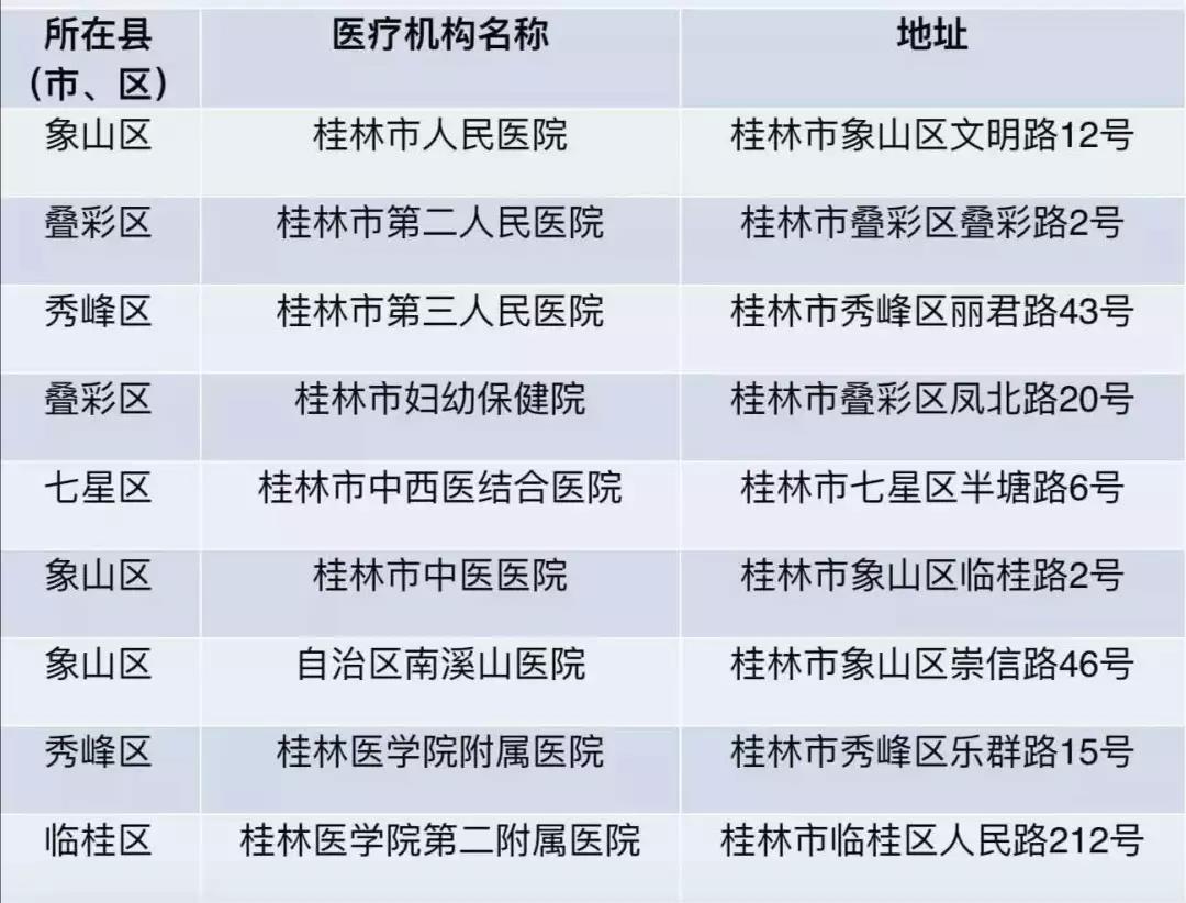桂林市設有發(fā)熱門診的醫(yī)療機構名單