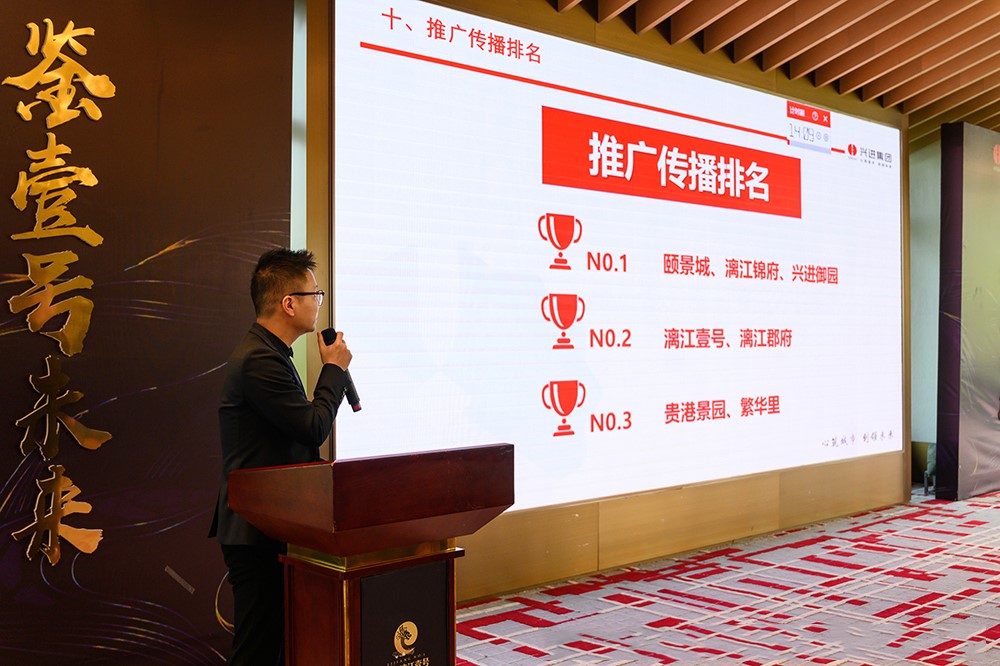 頒獎儀式結(jié)束后,興進(jìn)集團(tuán)助理總裁王昆先生對大會做出全面到位的總結(jié),他首先對全體營銷人員在一季度的辛苦付出,表示衷心的感謝。從對指標(biāo)存有敬畏之心、營銷要整合資源、執(zhí)行力等方面闡述觀點(diǎn),希望未來能與大家一起勇攀高峰,尋找一個又一個的可能。