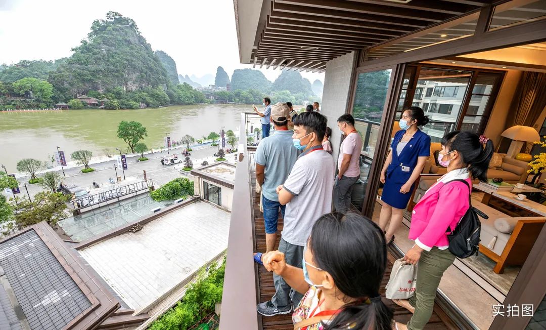 漓江風(fēng)光讓人眼前一亮,園中景色同樣令人沉醉。漓江郡府園林,重現(xiàn)桂林八景的盛世風(fēng)貌,漫步于庭院,便能體味別樣的桂林山水文化。“太美了,家樓下的風(fēng)景就那么好,十分憧憬以后在興進(jìn)的生活?!辈簧儋e客表達(dá)了自己的喜愛,紛紛拿出手機(jī)拍下美景。