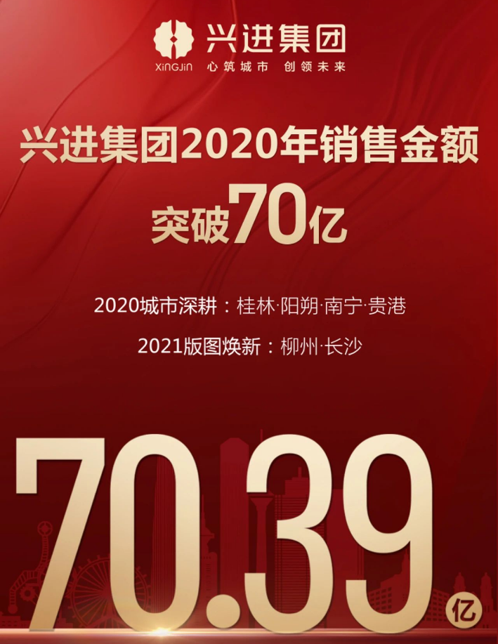近日,2020年桂林市房地產(chǎn)業(yè)銷售金額榜單十強(qiáng)名單揭曉,興進(jìn)集團(tuán)位列榜首,連續(xù)兩年蟬聯(lián)銷售金額冠軍的寶座。