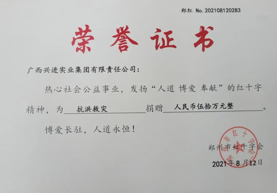 今年夏天,河南發(fā)生罕見洪災(zāi),多地抗洪救災(zāi)形勢(shì)十分嚴(yán)峻。為了幫助河南人民渡過難關(guān),興進(jìn)集團(tuán)通過鄭州市紅十字會(huì)向?yàn)?zāi)區(qū)捐贈(zèng)50萬(wàn)元善款,以實(shí)際行動(dòng)為受災(zāi)群眾、抗洪一線的救援人員提供支持。