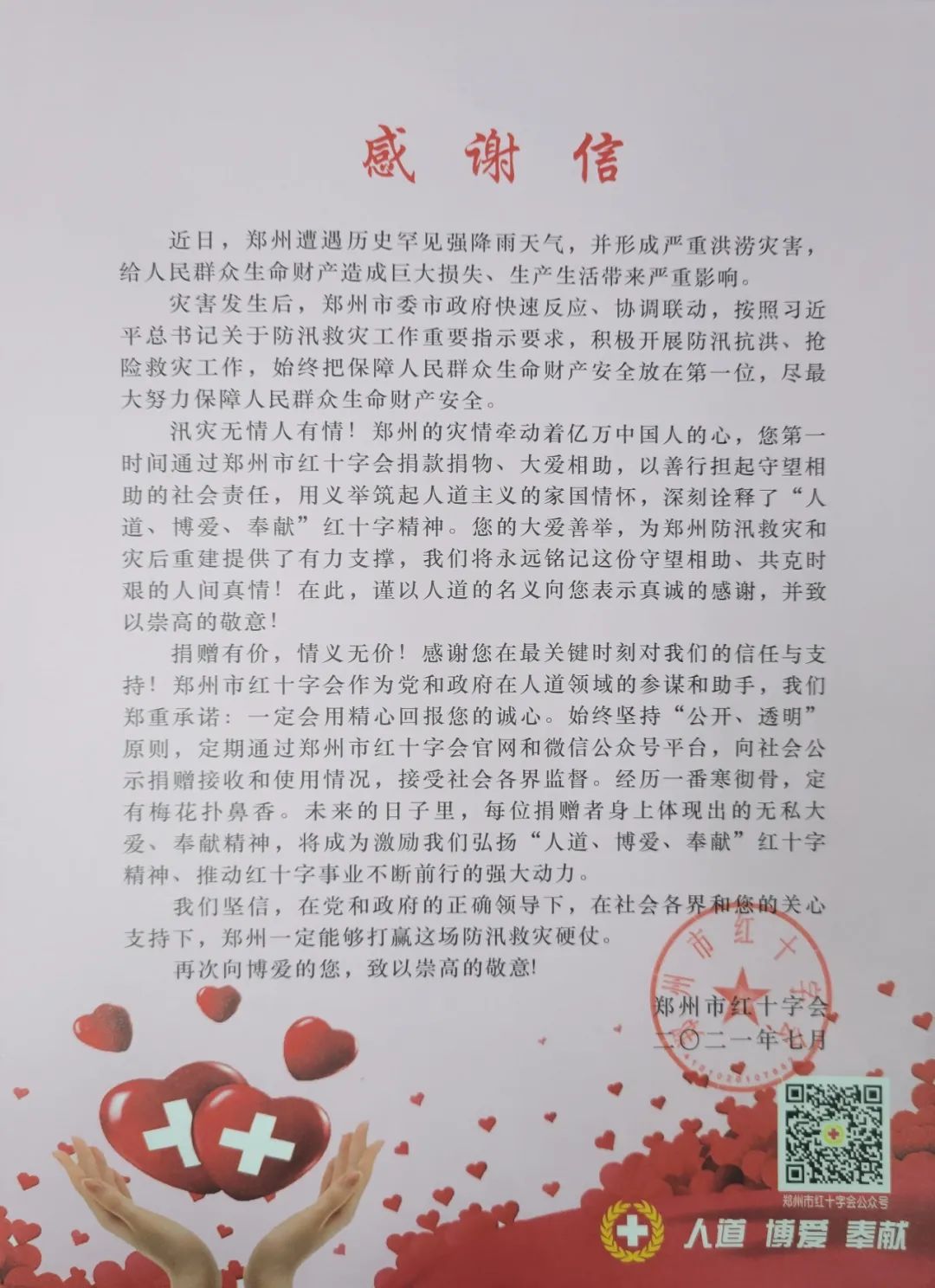 鄭州市紅十字會(huì)向興進(jìn)集團(tuán)的捐贈(zèng)表達(dá)感謝