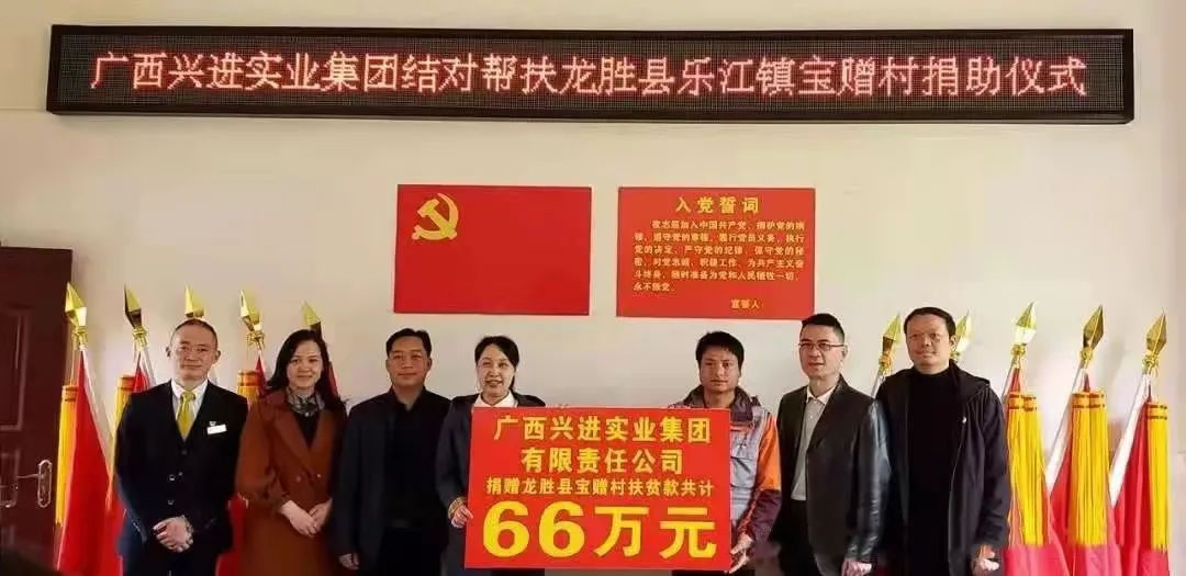 2020年,國(guó)家全面建成小康社會(huì)與打贏脫貧攻堅(jiān)戰(zhàn)的收官之年,興進(jìn)集團(tuán)先后向龍勝寶贈(zèng)村、陽(yáng)朔楊堤鄉(xiāng)、南寧雅梨鄉(xiāng)捐贈(zèng)扶貧款項(xiàng)共計(jì)73.5萬(wàn)元,以精準(zhǔn)扶貧持續(xù)發(fā)力,鞏固脫貧攻堅(jiān)成果,讓貧困鄉(xiāng)村走上致富之路。