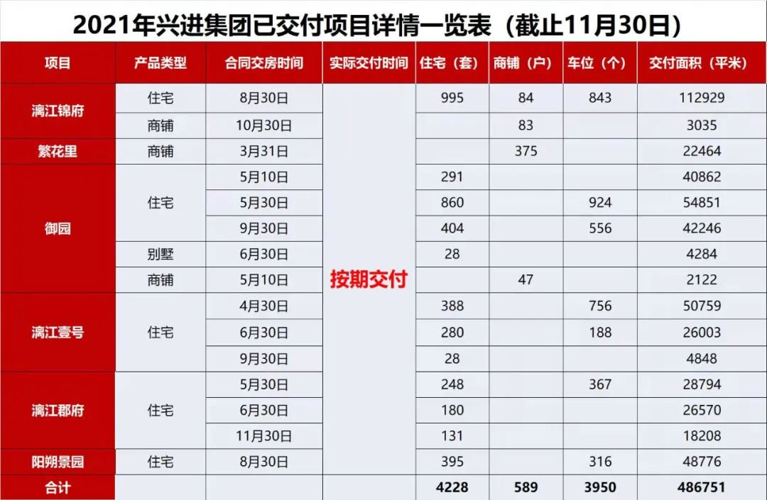 2021年興進(jìn)集團(tuán)交付項(xiàng)目一覽