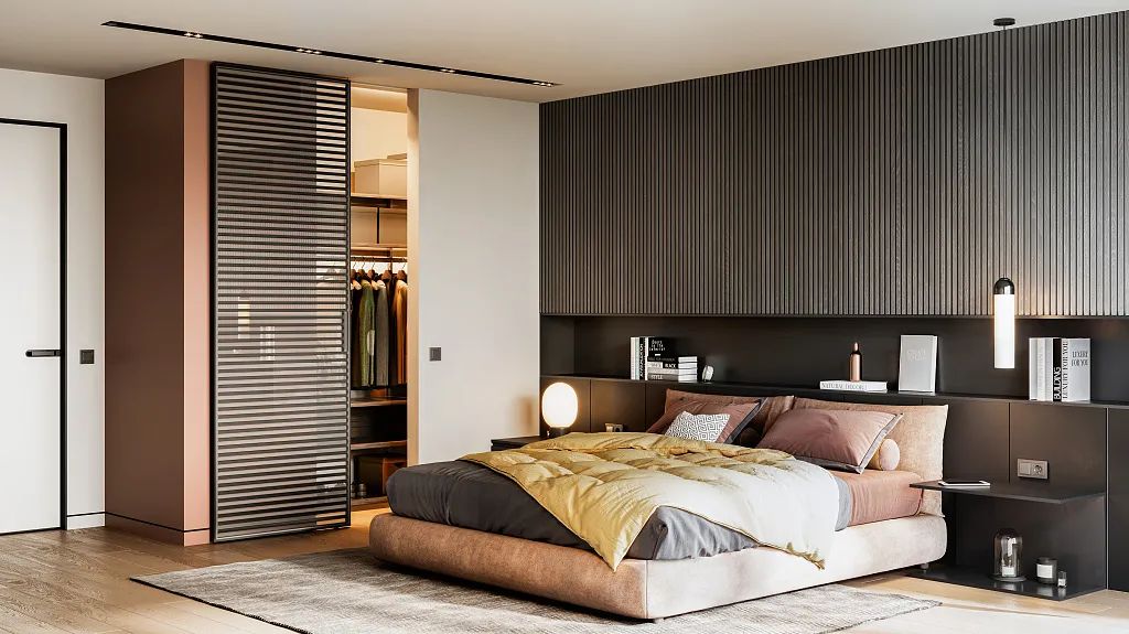 獨(dú)立衣帽間,大大提升了男女主人衣帽鞋靴收納的規(guī)整性和容量需求;床前空間預(yù)留可供化妝臺(tái)或小書吧使用,改變了臥室空間不足時(shí)只具備起居功能的尷尬。用超越期待的尺度,打破空間的尷尬和原有認(rèn)知,讓生活的實(shí)用性和情感滿足達(dá)到平衡。