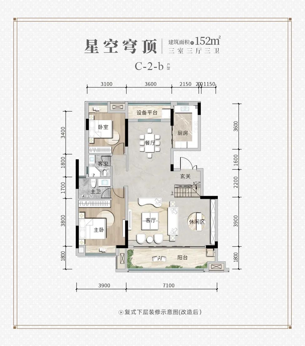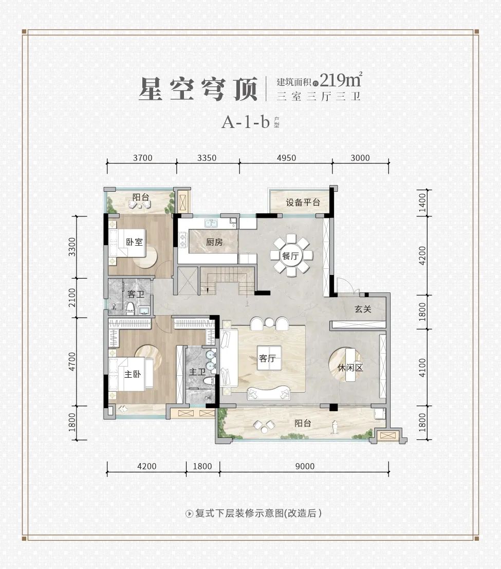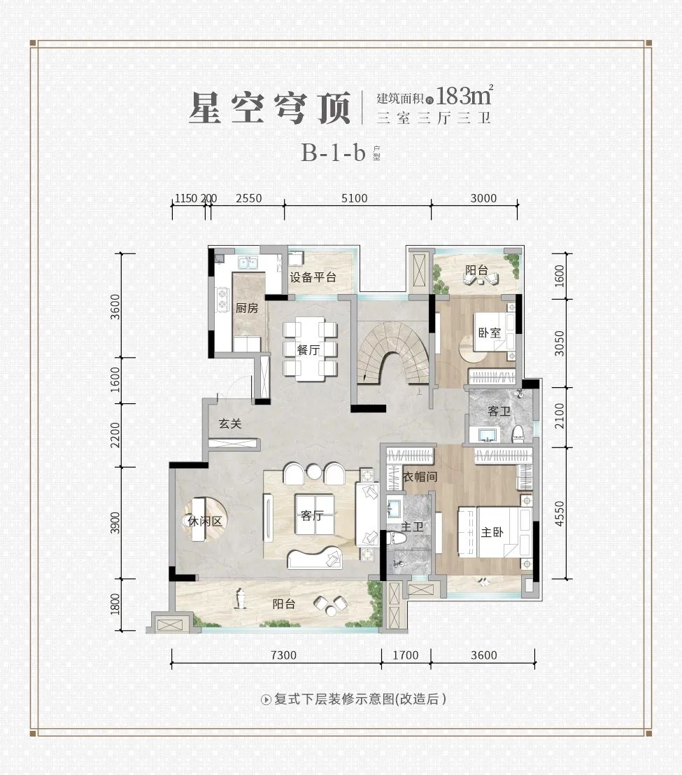 【星空穹頂】戶型帶給我們的,是空間層次與功能表現(xiàn)的迭代,也是生活全新享受的開始。讓生活與期待共生,將調(diào)動(dòng)情緒與情感滿足的細(xì)節(jié)點(diǎn)綴其中,鏈接起心中最本真的生活樂趣。