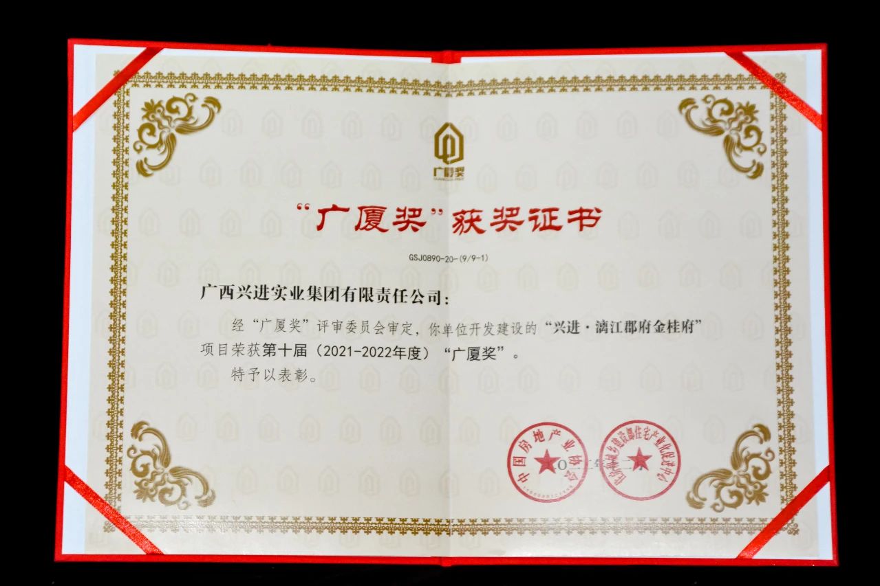 興進集團憑借穩(wěn)健經(jīng)營和市場的高度認(rèn)可,榮獲廣西地產(chǎn)穩(wěn)健發(fā)展企業(yè)大獎,同時入圍"2022年廣西房地產(chǎn)本土房企權(quán)益銷售金額"TOP20榜單,位列第三;興進·漓江郡府榮獲"2022年廣西地產(chǎn)各市縣標(biāo)桿項目"獎項。