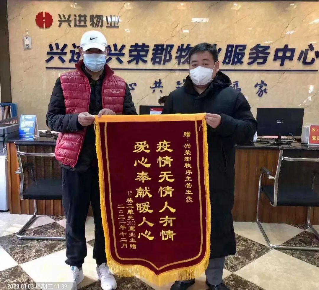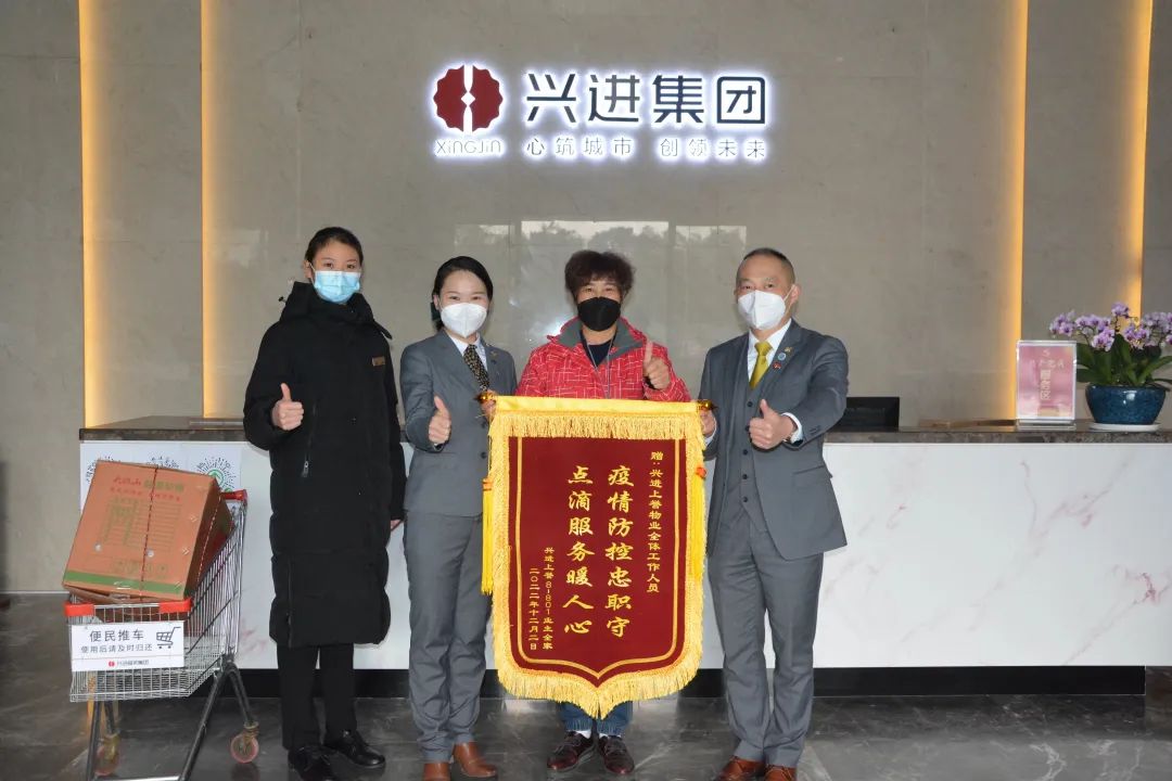 在2022年底,興進業(yè)主邵先生因為在外地工作,父母年紀(jì)大了,在家生病而無人照顧。接到業(yè)主求助后,興進物業(yè)王主管積極地幫助老人送物資送藥,像家人一樣照顧他的父母,邵先生工作結(jié)束回來后,看到興進物業(yè)人的盡心盡力的付出,十分感動,特意制作了一面錦旗表達感謝。