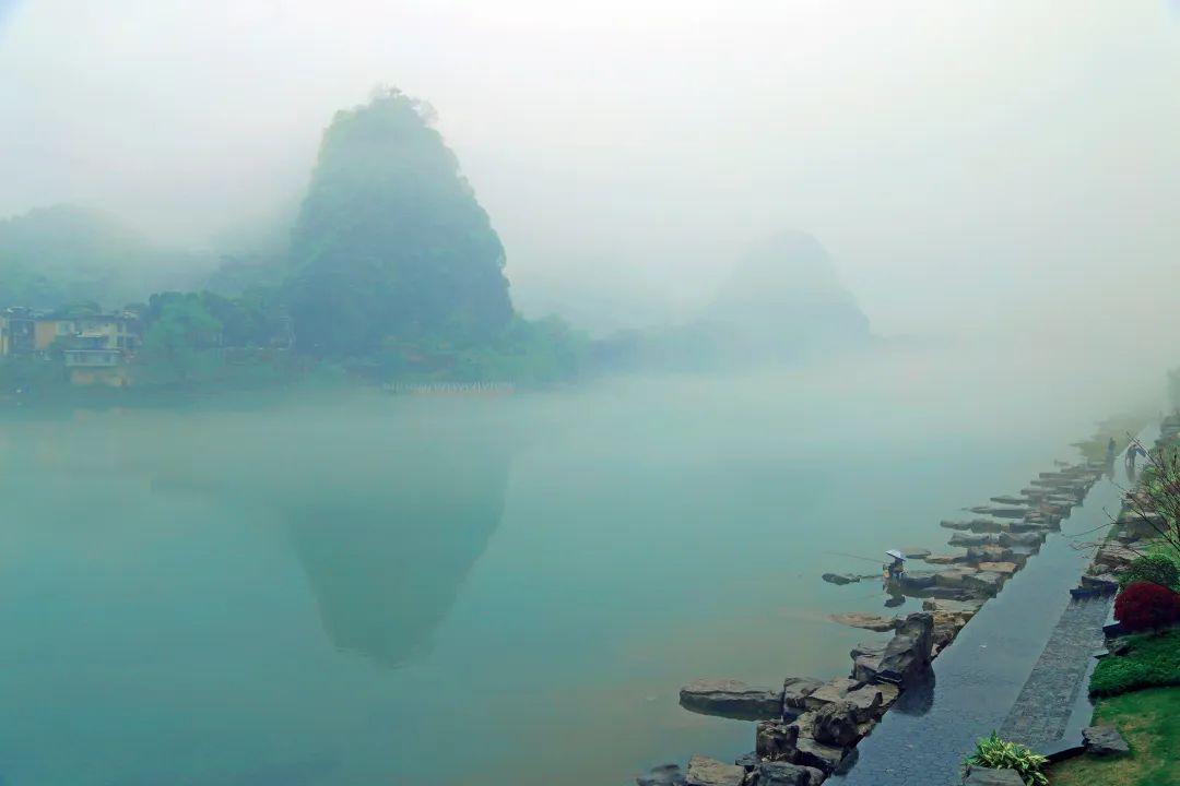 秋北京、夜上海、霧重慶、雨桂林,二月煙雨,讓漓江多了一份縹緲的美感,清風拂過,云霧聚了又散、散了又聚,宛若一幅流動的水墨畫,令人嘆為觀止。