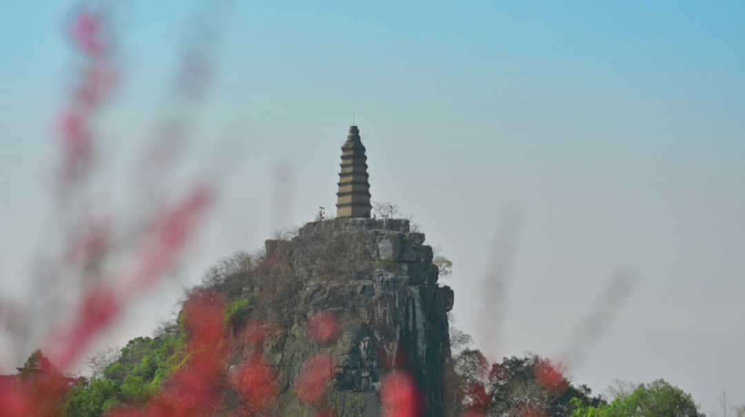 穿山枕水而眠,塔山倒影,桃樹成林,目之所及,皆是當年徐霞客贊嘆的絕景。