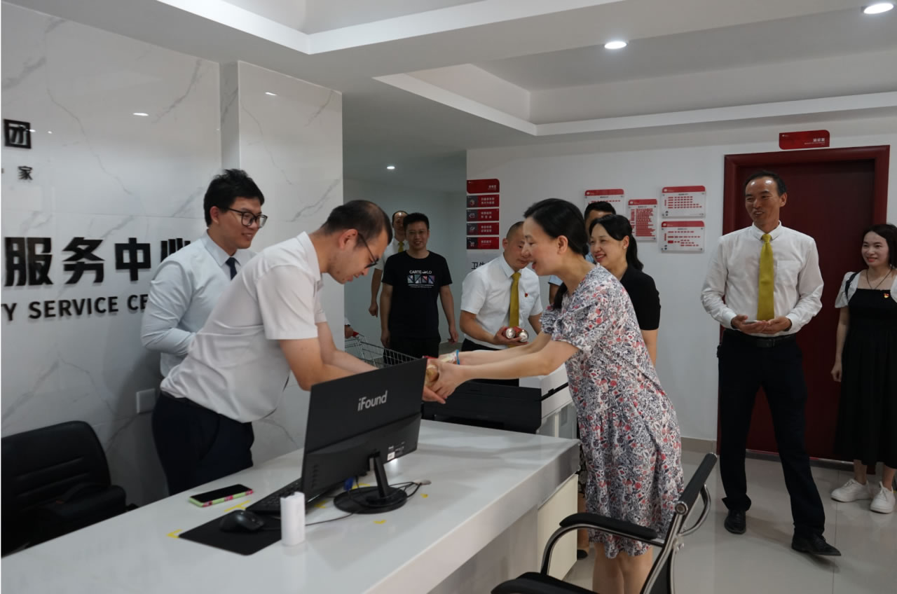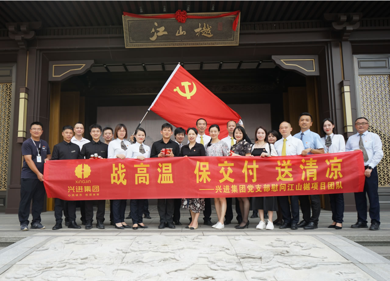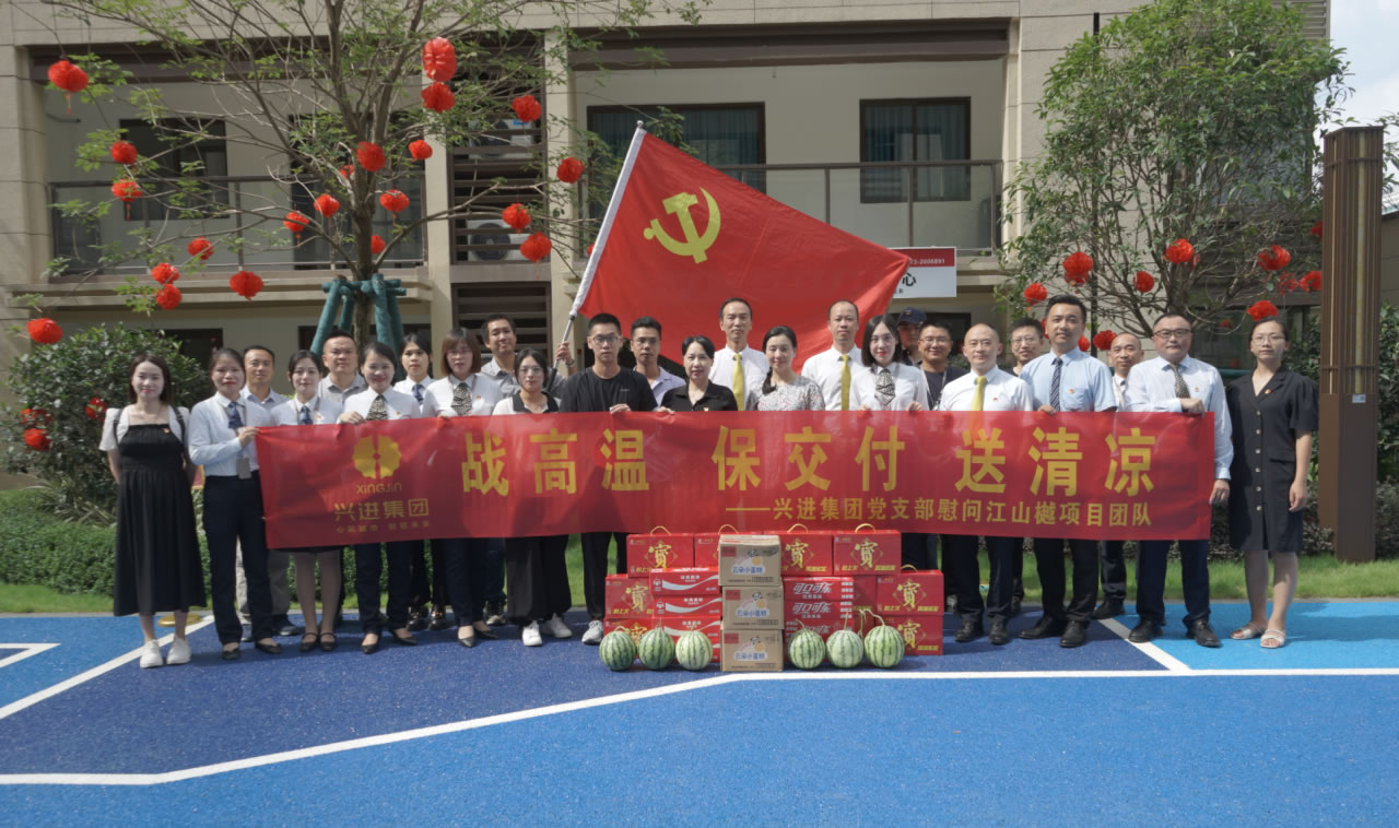 興進(jìn)集團(tuán)黨支部書記羅捷、集團(tuán)副總裁王敏、興進(jìn)物業(yè)服務(wù)集團(tuán)總經(jīng)理王永忠、集團(tuán)黨支部宣傳委員陳健帶領(lǐng)黨員代表一行,為奮戰(zhàn)在交付一線的項目、物業(yè)、營銷員工以及集團(tuán)交房支援人員送去解暑清涼慰問品,讓堅守在崗位的一線員工們感受到絲絲清涼和濃濃關(guān)懷。