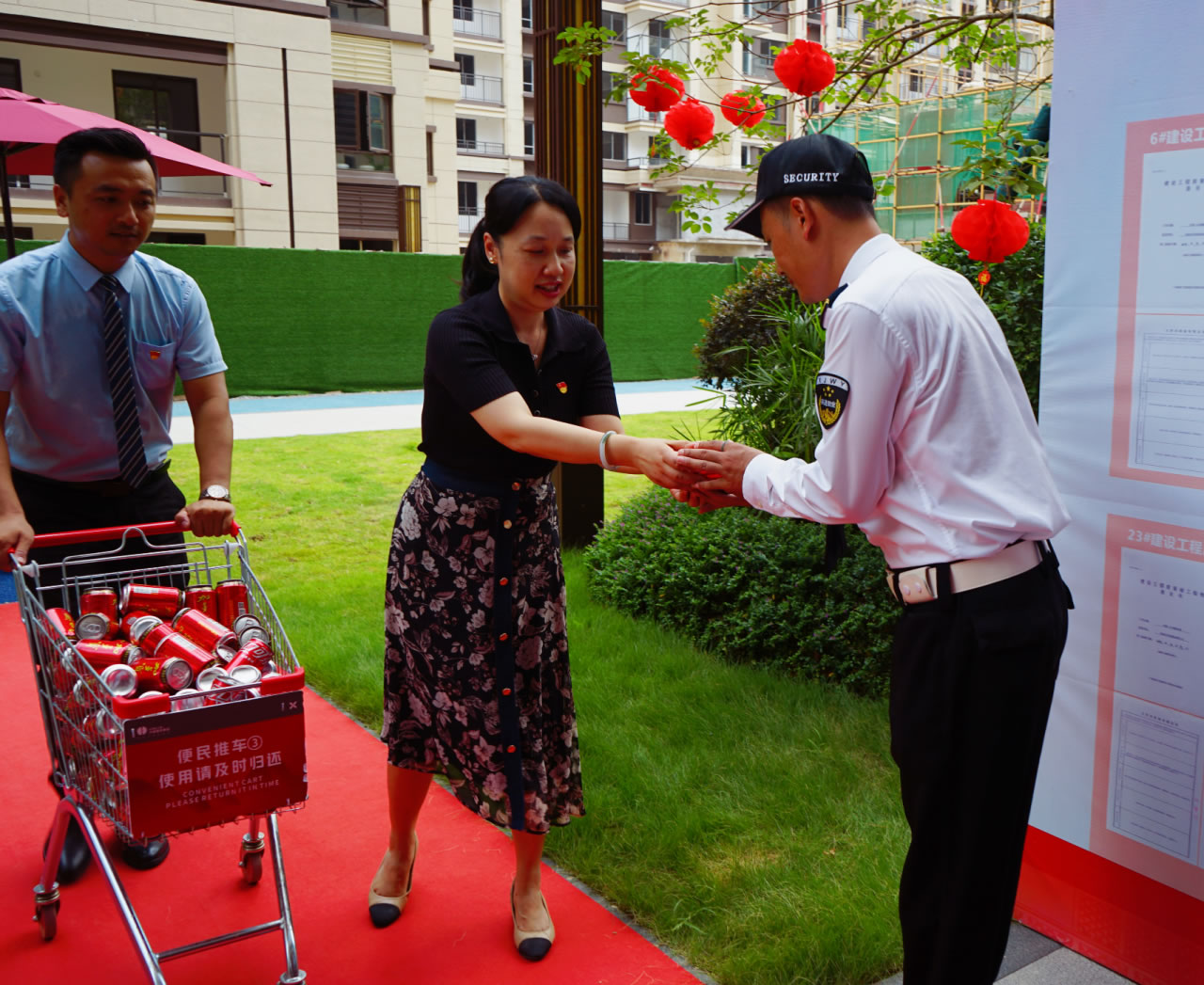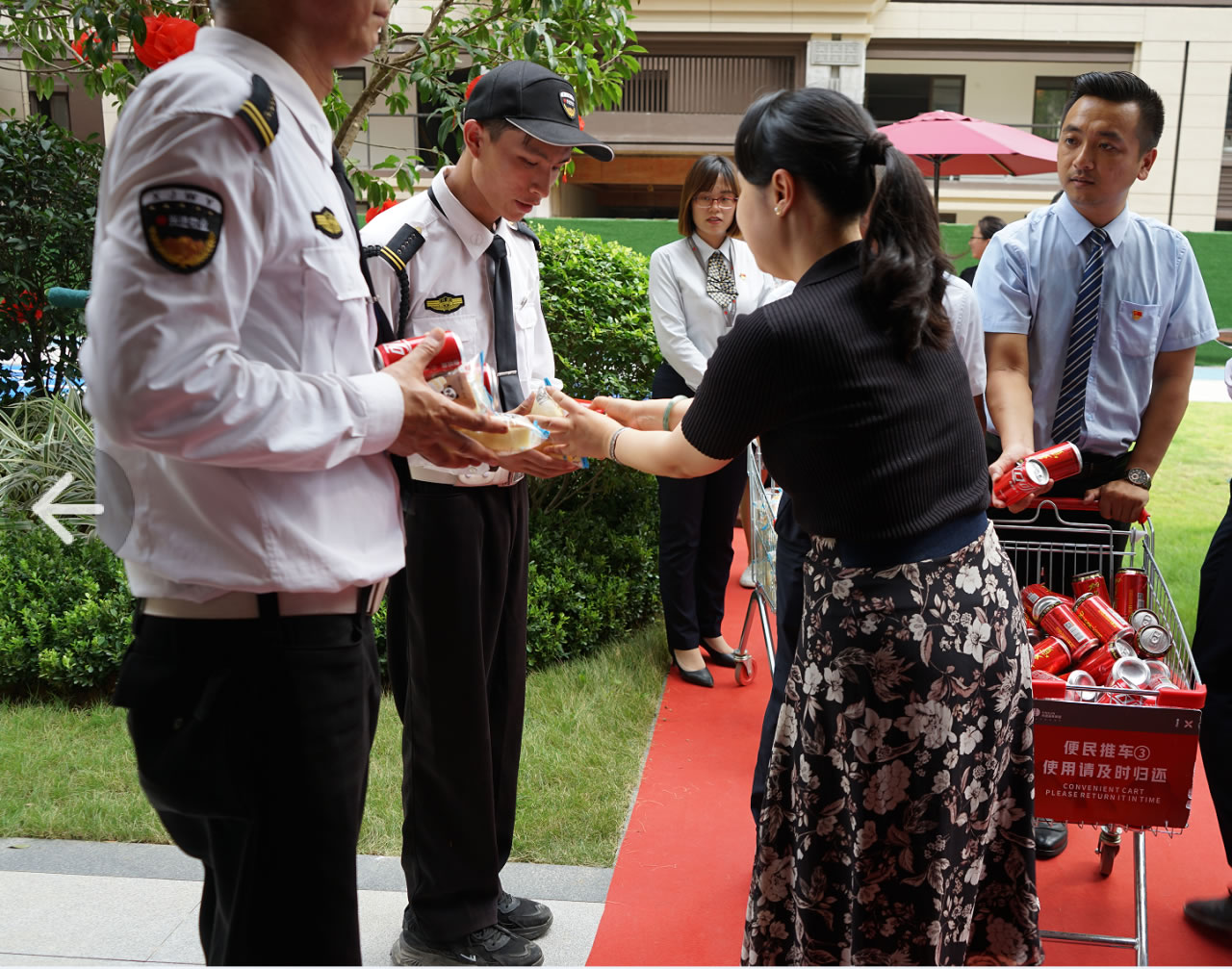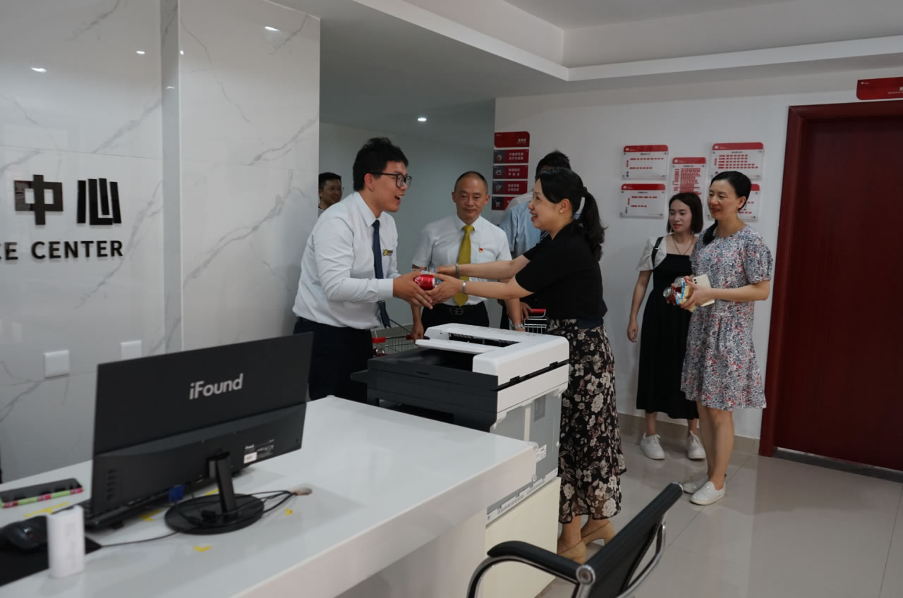 興進(jìn)集團(tuán)黨支部書記羅捷、集團(tuán)副總裁王敏、興進(jìn)物業(yè)服務(wù)集團(tuán)總經(jīng)理王永忠、集團(tuán)黨支部宣傳委員陳健帶領(lǐng)黨員代表一行,為奮戰(zhàn)在交付一線的項目、物業(yè)、營銷員工以及集團(tuán)交房支援人員送去解暑清涼慰問品,讓堅守在崗位的一線員工們感受到絲絲清涼和濃濃關(guān)懷。